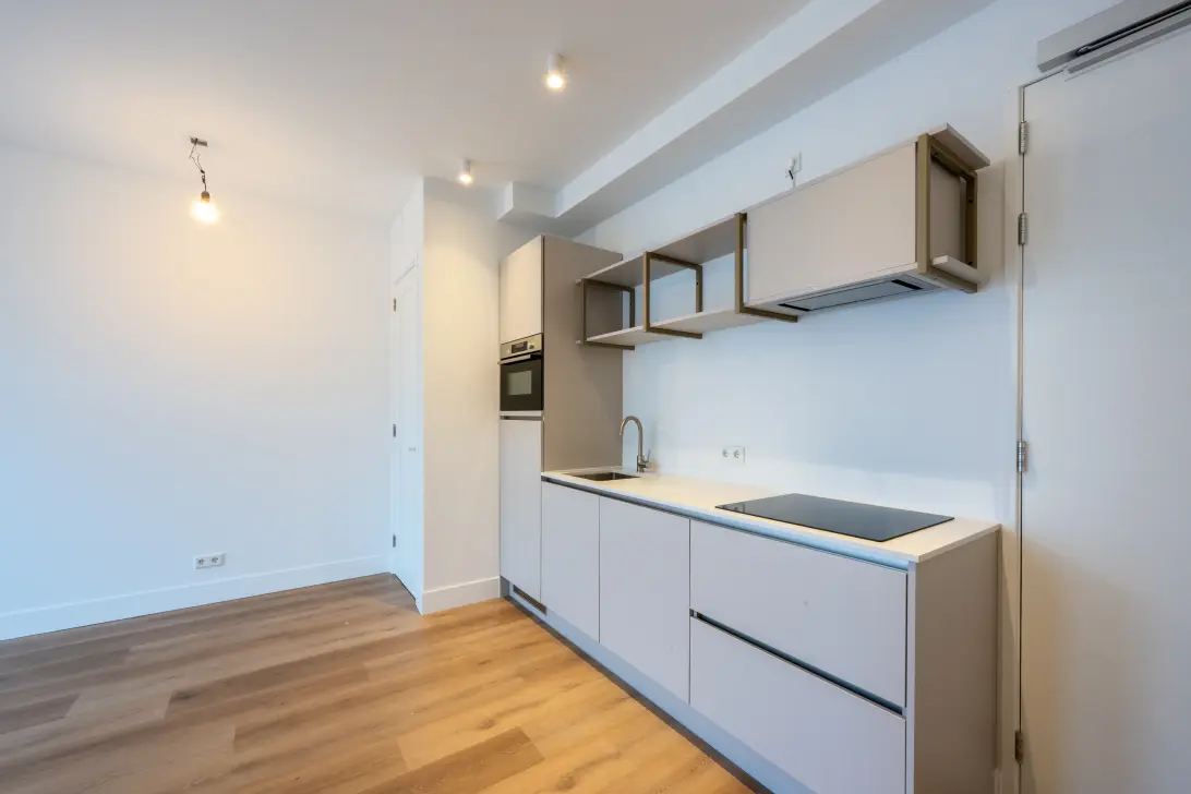 De woning beschikt over een woonkamer met open keuken, voorzien van moderne inbouwapparatuur, een ruime slaapkamer, een klein balkonnetje op het westen en een luxe badkamer. De bergruimte in het appartement biedt voldoende ruimte voor de wasmachine en droger, en extra opslag is beschikbaar in een aparte externe bergruimte. Dankzij de slimme indeling is deze woning perfect geschikt voor starters die op zoek zijn naar comfort en gemak.