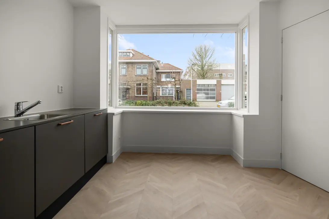 De grote woonkamer is het echte hart van dit huis. De openslaande ramen laten het daglicht rijkelijk naar binnen stromen, en door de handige indeling biedt de ruimte voldoende plek voor een gezellige zithoek én een volledige eethoek voor memorable diners. Hier komen vrije avonden tot hun recht, met een goed boek op de bank óf tijdens een gezellige filmavond met vrienden.