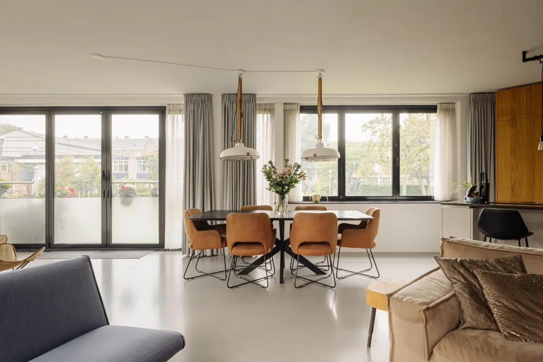 Het hele appartement is voorzien van vloerverwarming, per ruimte regelbaar en een grijskleurige gietvloer.