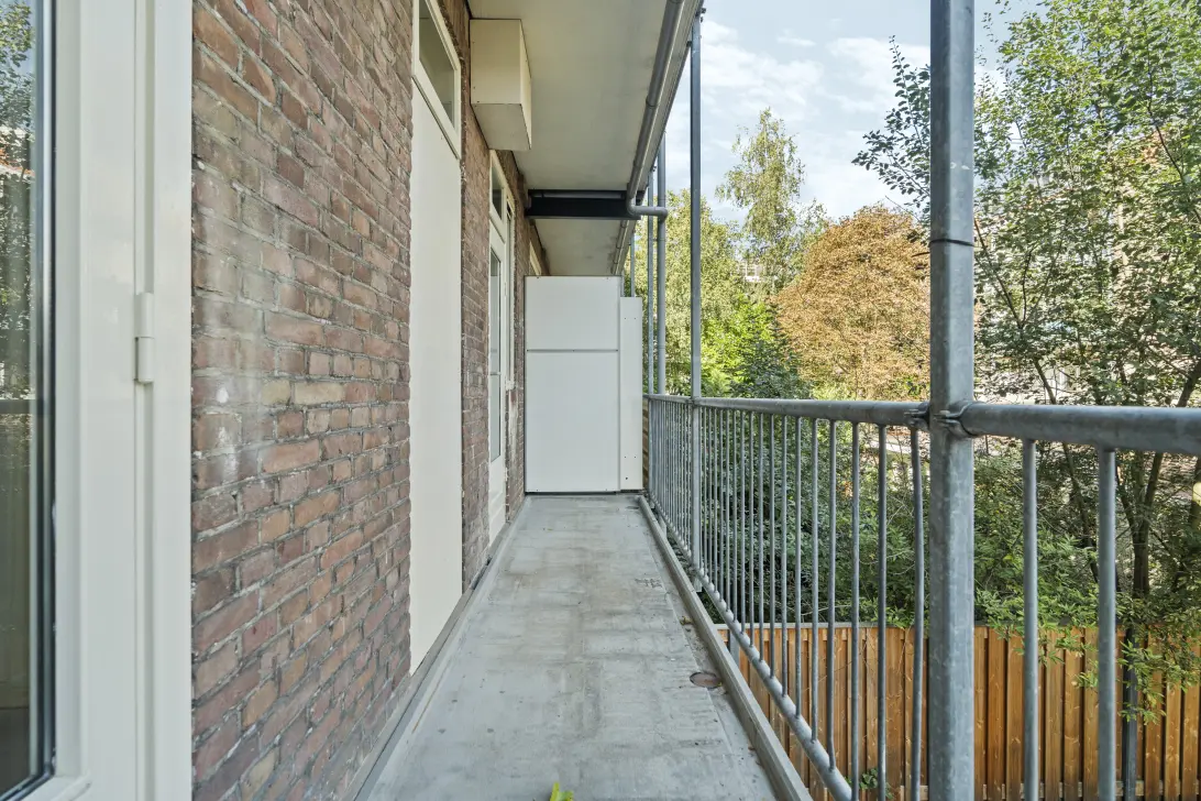 Het appartement is gelegen in een complex aan een rustige straat in de Rivierenbuurt en om de hoek van de Rijnstraat, met al zijn winkelvoorzieningen voor de dagelijkse boodschappen. Om de hoek van het appartement bevindt zich de remise van de trams van de GVB. Dichtbij de RAI, het Mirandabad, het Martin Luther Kingpark en de Maasstraat, maar ook zijn er vele gezellige horecagelegenheden als lunchrooms, cafés en restaurants én dat ook op maar een paar minuten fietsafstand van de Pijp.