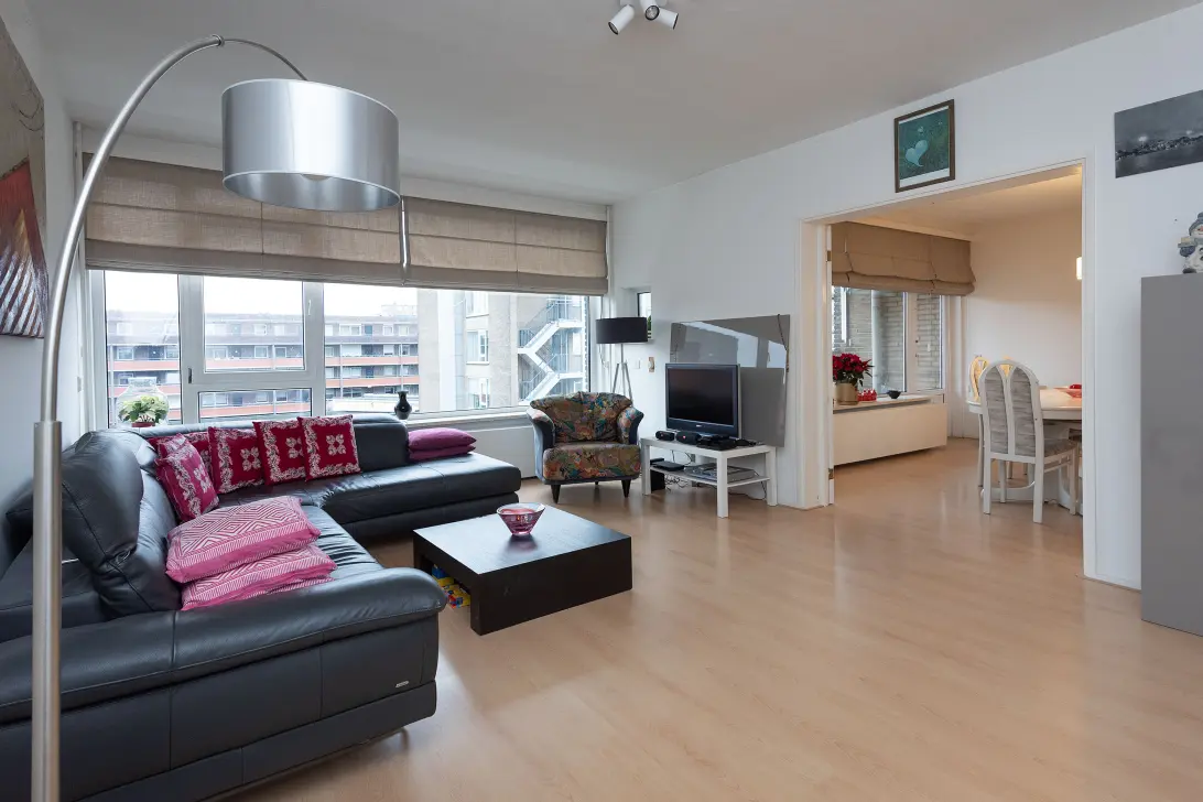 • eetkamer: 4.60 x 4.18 meter, met vaste kasten en toegang tot het balkon
