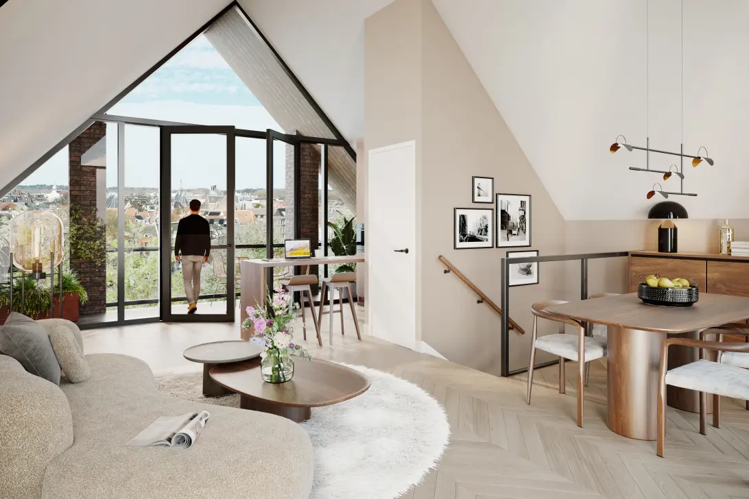 The location is also top notch! Its central location in the Vijfhoek makes it an ideal place to live for those who love city life. You are never far from the cosy cafés, restaurants and shops, yet you can come home to a quiet and atmospheric environment. By bike, you can be in the dunes within 20 minutes and by the sea in Bloemendaal or Zandvoort within 30 minutes. By car, you quickly reach the arterial roads to Amsterdam, Schiphol and The Hague. The NS railway station is within walking distance with direct connections to Amsterdam, Schiphol and Leiden. It is this perfect balance between the liveliness of the city and the charm of a village that makes the Vijfhoek so beloved.