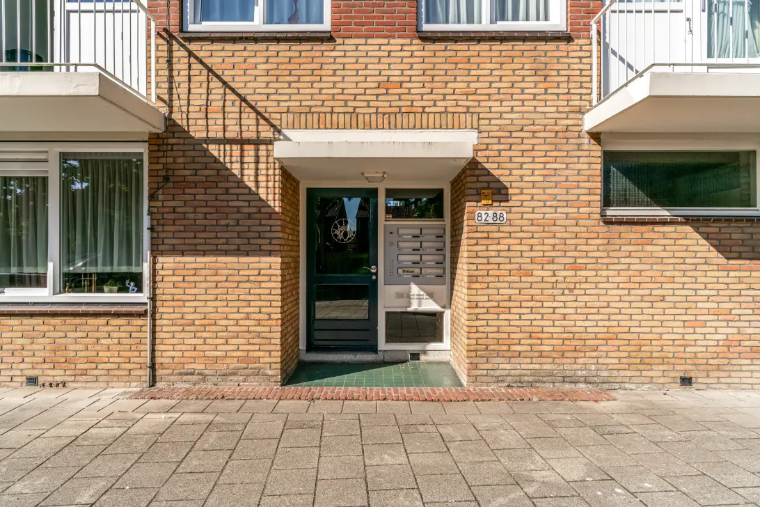 Via de beveiligde entree komt u met de trap op de tweede verdieping. De hal is ruim en biedt toegang tot het toilet, de eerste slaapkamer, de nette moderne keuken met aansluitend het kleinere balkon aan de achterzijde en de woonkamer. Naast de woonkamer bevindt zich de tweede slaapkamer. Hoewel de meeste mensen deze kamer eenvoudig bij de woonkamer hebben betrokken is deze kamer bij de huidige bewoners bewust als slaapkamer in gebruik gebleven.