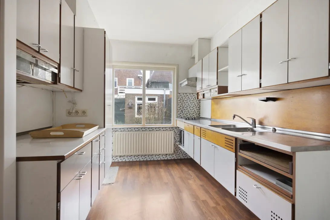 De oplettende kijker heeft het wellicht al gezien, de diverse woningdetails verraden namelijk het bouwjaar van 1954. Zo beschikt de woning over een tal van bijzondere kenmerken, waaronder een iconische Piet Zwart Bruynzeel keuken. Noemenswaardig is ook zeker de breedte van de woning zelf. Met z’n 6.25 meter merk je dit direct bij het betreden van bijvoorbeeld de slaapkamers en de keuken. De tuin is mooi van formaat en voor de koper met groene vingers een leuk project, waarbij je nog alle kanten op kunt.