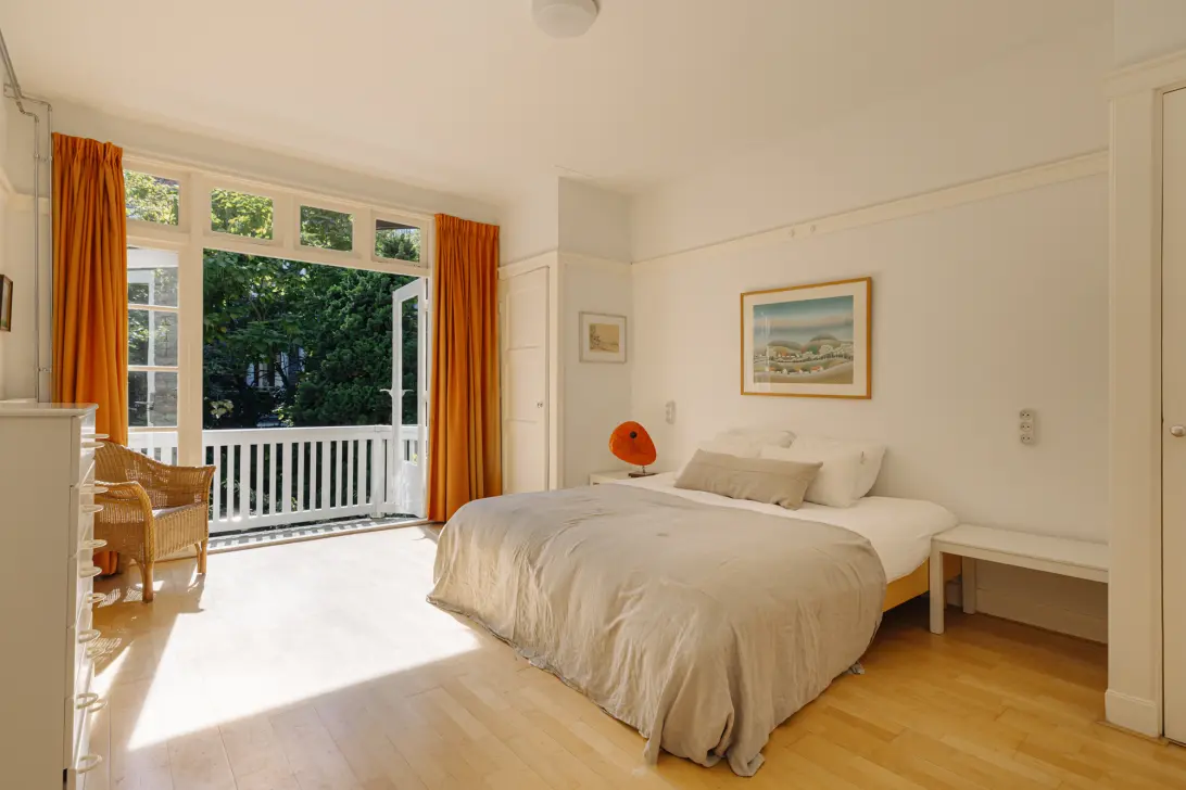 Very charming and characteristic 1930s family home of approximately 291 m², featuring six bedrooms, two bathrooms, two separate toilets, a deep front garden, multiple balconies, and a sunny south-facing back garden. Large windows, high ceilings, and a pleasant layout create abundant natural light and a spacious feel in this municipal monument. Situated on a wide, green avenue in the sought-after Apollobuurt, within walking distance of Beethovenstraat and Cornelis Schuytstraat.