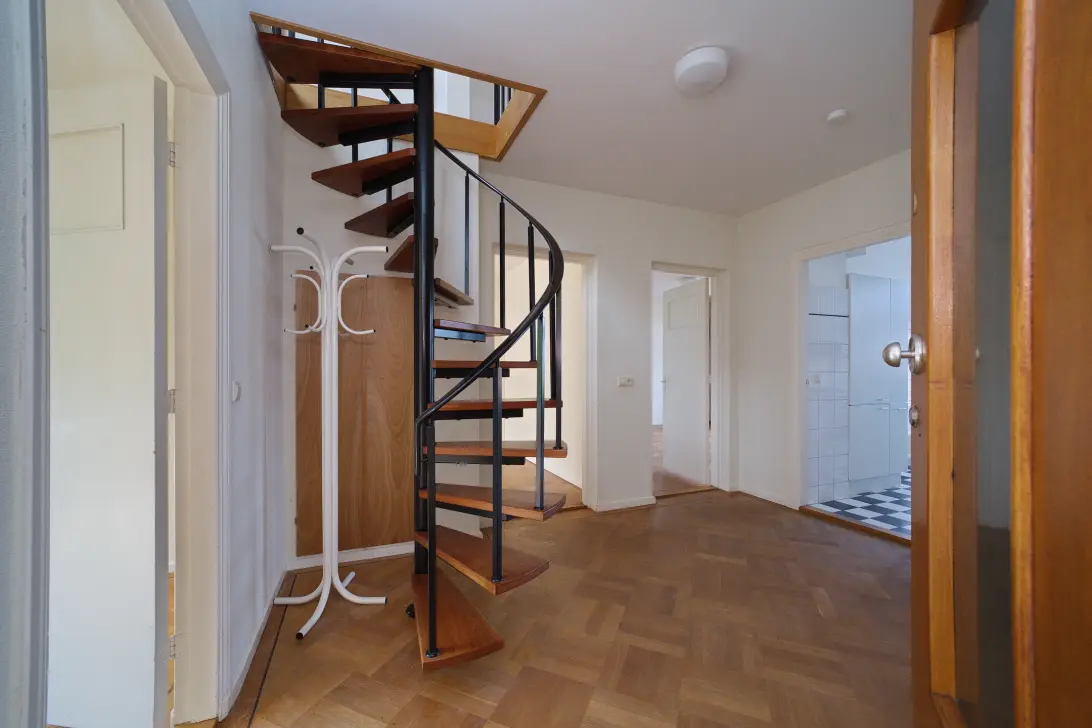 Via the spiral staircase in the hall to the 3rd floor with spacious roof. Here is a large room that can be used e.g. as a study. The central heating boiler and washing equipment are also located here. It is possible to realize 3 (bed) rooms and a bathroom on this floor.