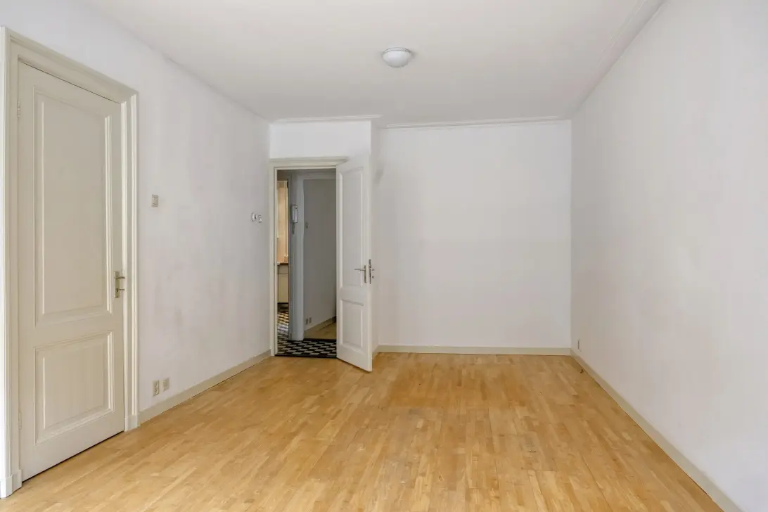 Je komt binnen in de hal die de diverse ruimtes met elkaar verbindt. De woonkamer is aan de voorzijde van het appartement gelegen en door de drie grote ramen heerlijk licht. De dichte keuken met lichte fronten en bijpassend aanrechtblad is voorzien van een 4-pits gaskookplaat, combi magnetron, koelkast en wasmachineaansluiting. De Miele wasmachine blijft achter! De slaapkamer ligt aan de achterzijde van het appartement en is voorzien van een wastafelmeubel en kastenwand. Het balkon is vanuit de slaapkamer te betreden. De badkamer is voorzien van een douche en toilet met fonteintje.