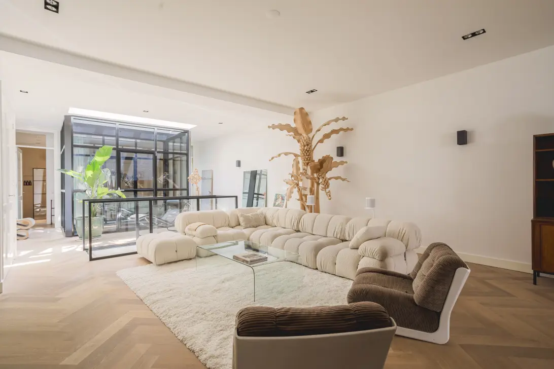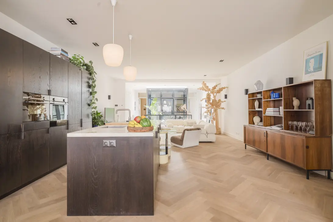 This exceptional loft-style ground-floor apartment of approx. 162 m² is situated on freehold land, was fully and luxuriously renovated in 2019, and uniquely combines comfort, atmosphere, and design.