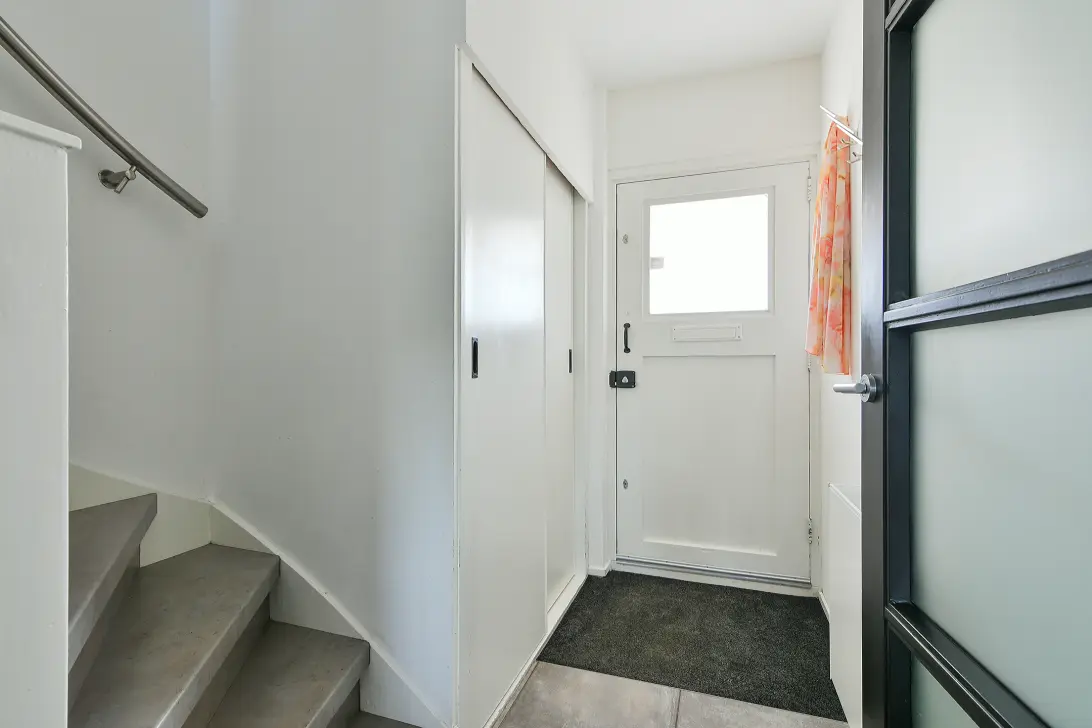 Via de entree kom je binnen in de hal met de vernieuwde meterkast (2022), een praktische garderoberuimte en de trapopgang naar de eerste verdieping (2021). Vanuit de hal bereik je via een glazen paneeldeur de woonkamer.