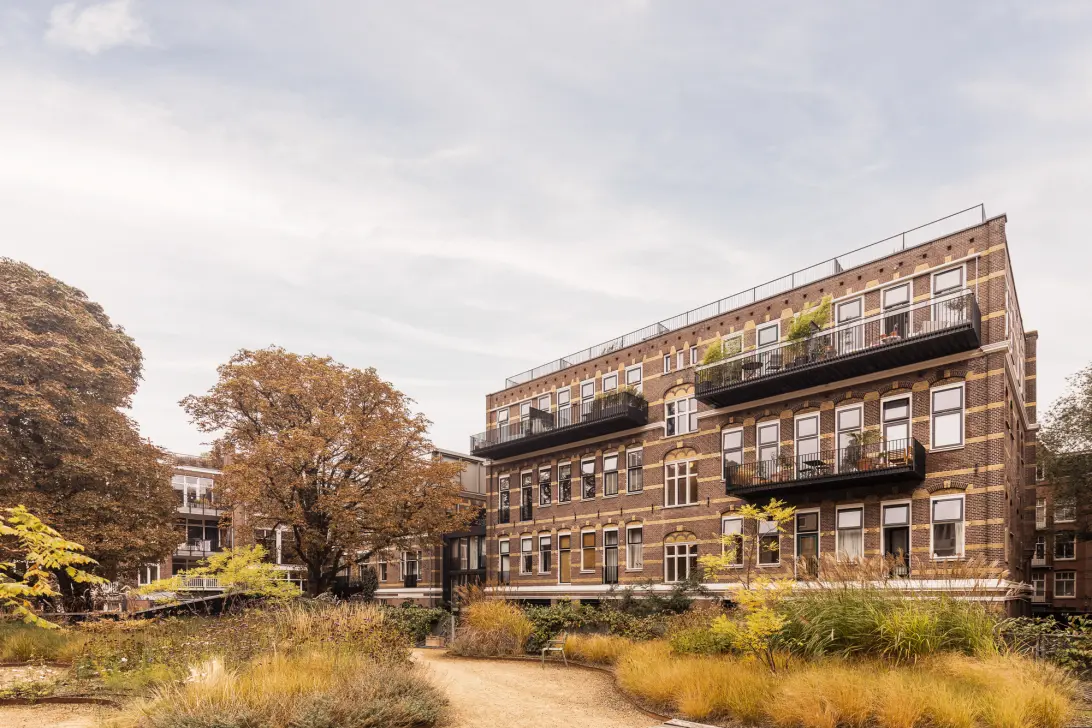 - Daarnaast beschikt het complex over een bijzonder grote gemeenschappelijke binnentuin, diverse gezamenlijke ruimten én een kas voor planten of eigen groenteprojecten.