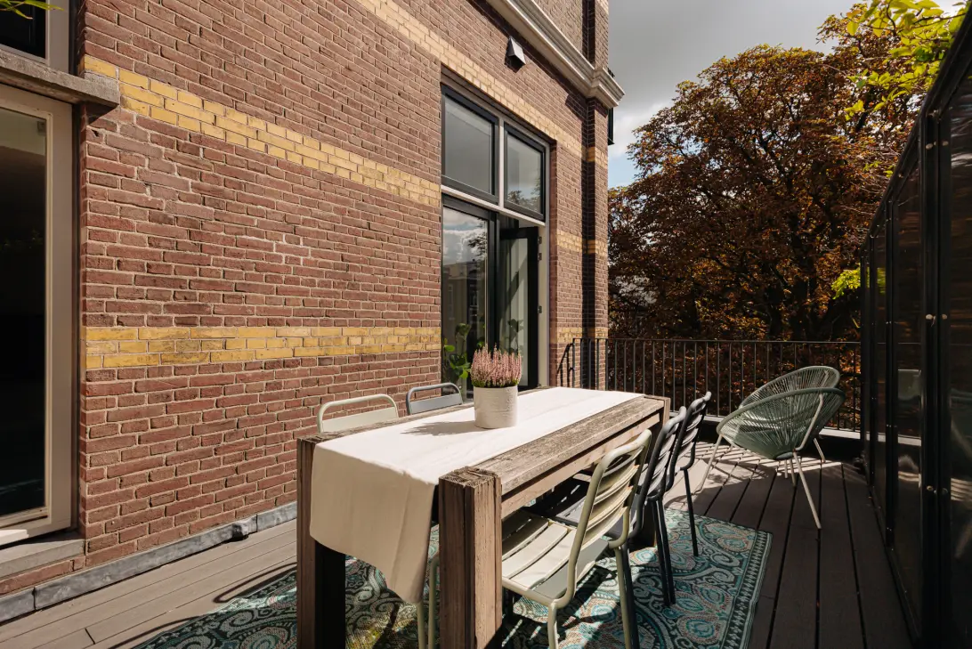 - Er is volop ruimte voor een royale eettafel, een barbecue en een comfortabele loungehoek;