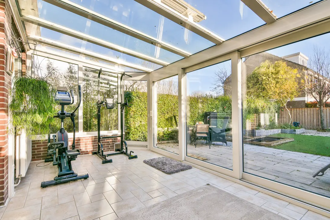 De serre is een heerlijke lichte verblijfsruimte met vloerverwarming en dubbele beglazing. Dankzij de schuifdeuren is er een mooie overgang naar de achtertuin, waar je het hele jaar door comfortabel kunt genieten van deze ruimte.