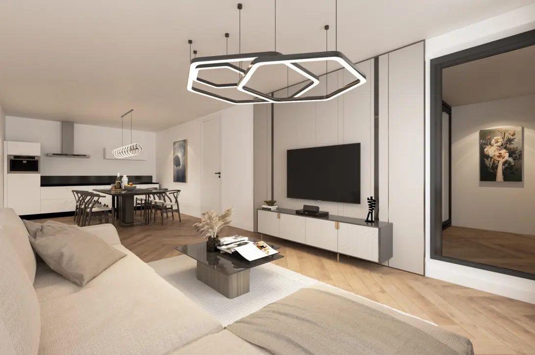 • Elektrisch bedienbare gordijnen in de woonkamer