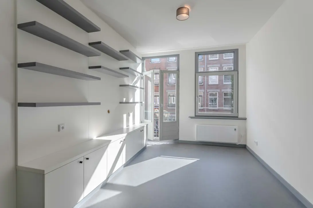 Modern en geheel gerenoveerd (2019) appartement op eigen grond van ca. 44 m2 met twee slaapkamers en balkons, gelegen in de hippe Staatsliedenbuurt met het Westerpark als achtertuin.