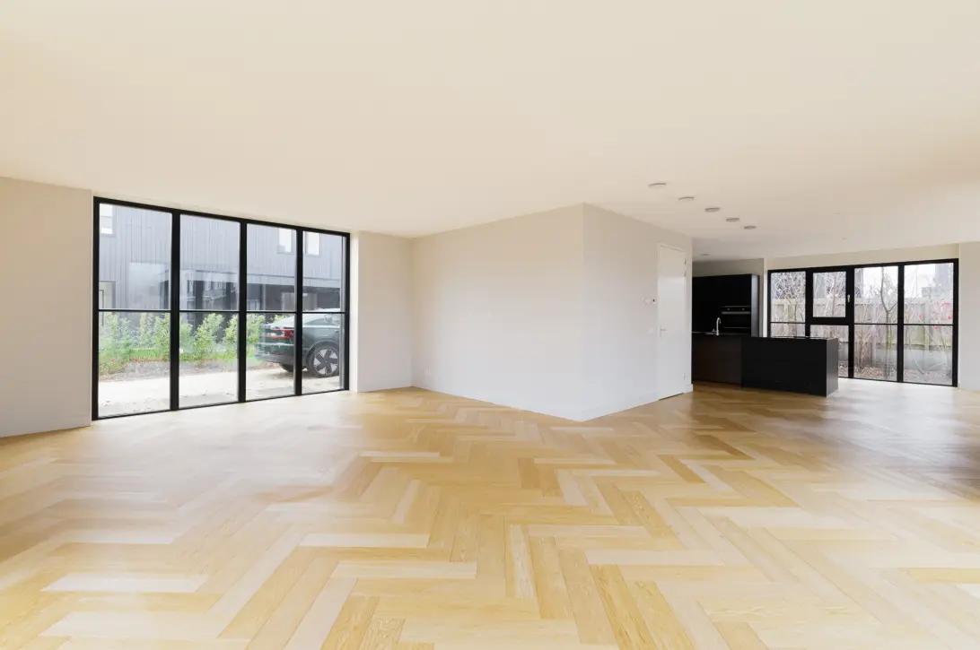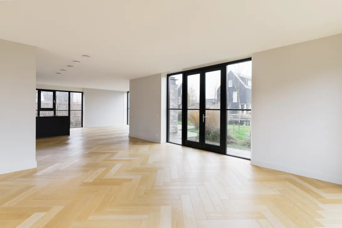 - Tuingerichte woonkamer met visgraatvloer en vloerverwarming