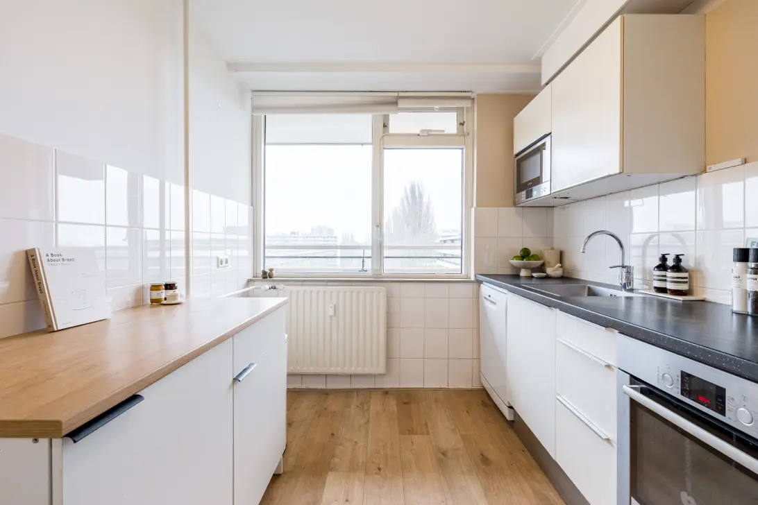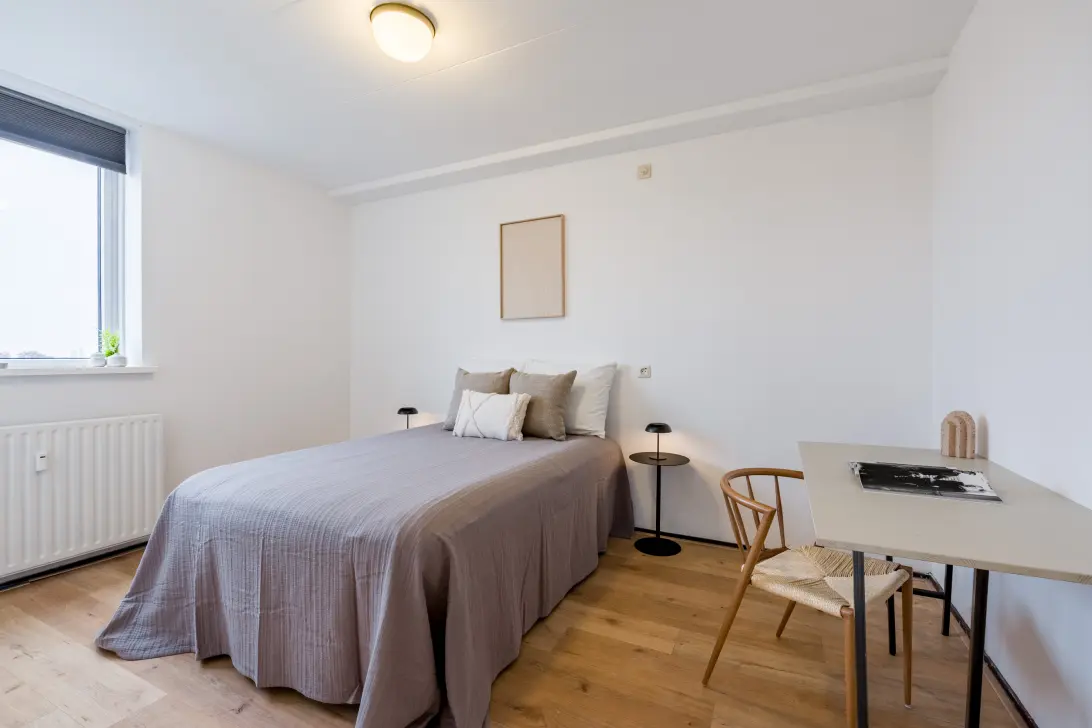 Het appartement beschikt over drie goed bemeten slaapkamers. De badkamer is netjes uitgevoerd en voorzien van een ligbad, wastafel en aansluitingen voor wasmachine en droger. Het toilet is separaat.