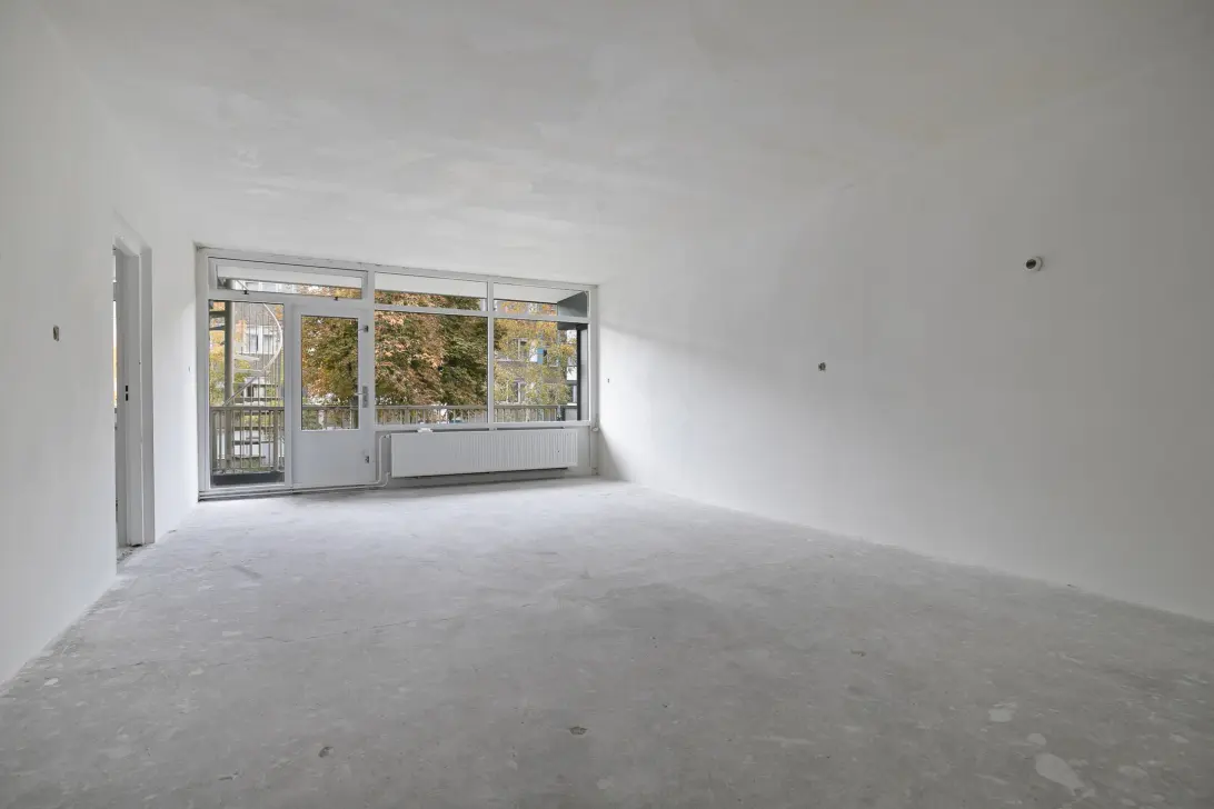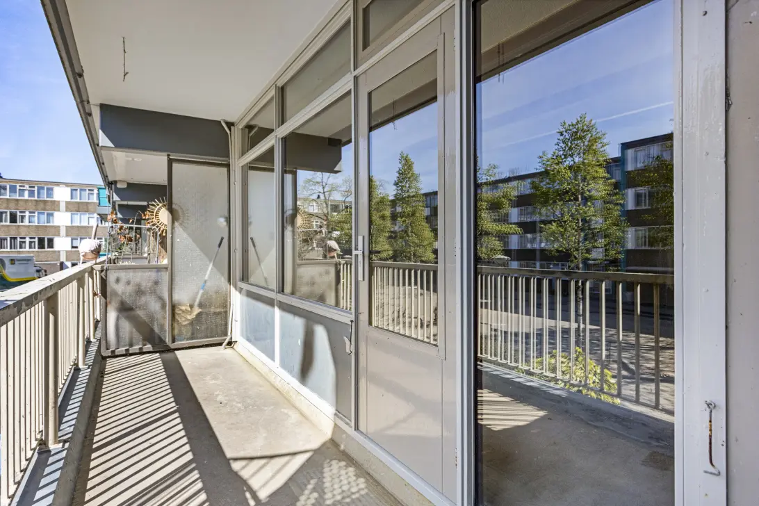 Entree; hal/gang, twee slaapkamers aan de voorzijde en nog een slaapkamer aan de achterzijde,mseparaat toilet met fontein. Badkamer met wasmachineaansluiting. Lichte woonkamer met halfopen casco keuken. De woonkamer geeft toegang tot het zonnige balkon op het zuidwesten.