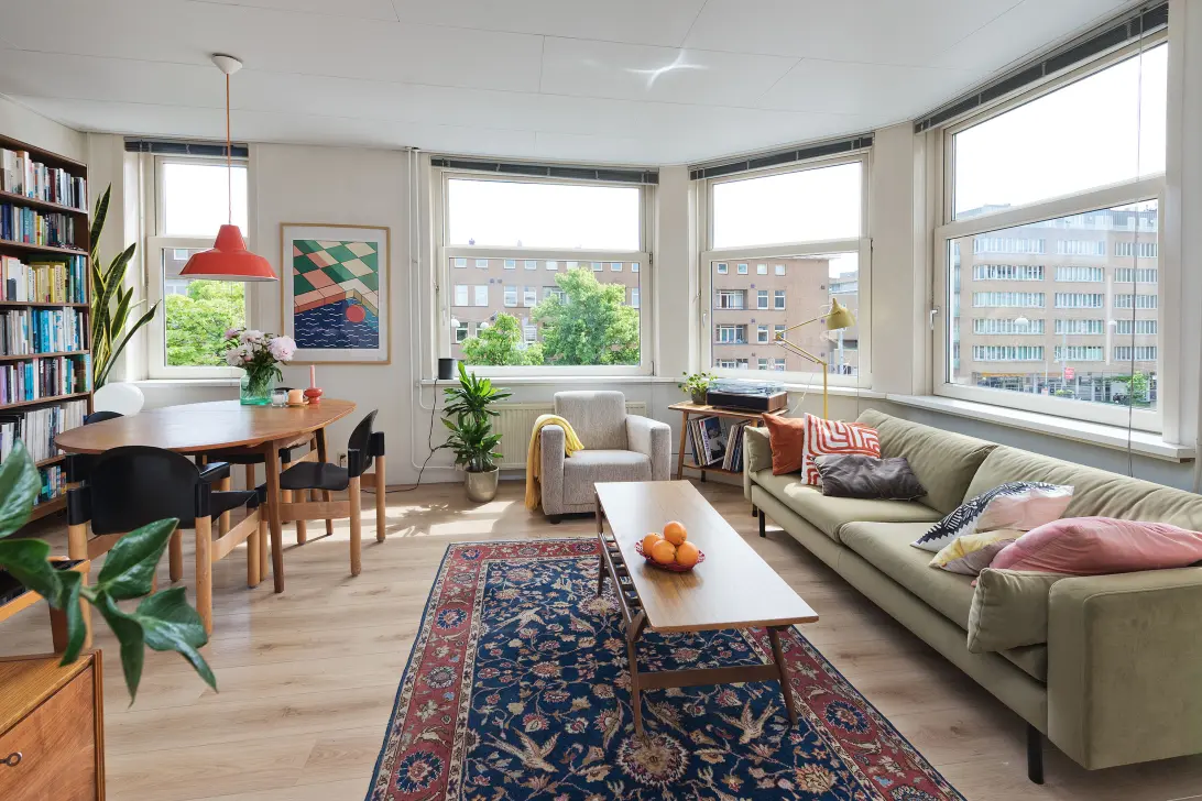 Gezellig vierkamer hoekappartement met twee balkons en een berging in de onderbouw. Deze lichte woning met twee volwaardige slaapkamers en derde (studeer)kamer ligt in een karakteristiek jaren veertig pand en heeft vrij uitzicht aan de voorzijde. Veel openbaar vervoer en winkels op loopafstand bereikbaar. Snelle toegang tot de A-10 en binnen 10 minuten fietsen sta je midden in de Jordaan. Gelegen op eeuwigdurend afgekochte erfpacht!