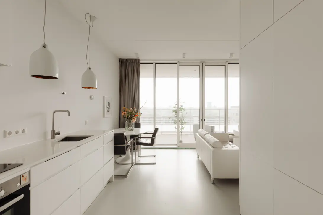DE MAHLER | Living in the modern and stately residential complex Intermezzo. The apartment is characterized by its modern and contemporary appearance and is equipped with all the conveniences of the 21st century. The apartment is approximately 47 square meters in size and has a terrace of approximately 14 square meters. Its efficient layout makes optimal use of the apartment's square meters. In addition, the high ceilings with a clearance height of three meters and the tall windows create a spacious and pleasant feeling. With a spacious south-facing terrace, the residence is very bright and feels spacious.