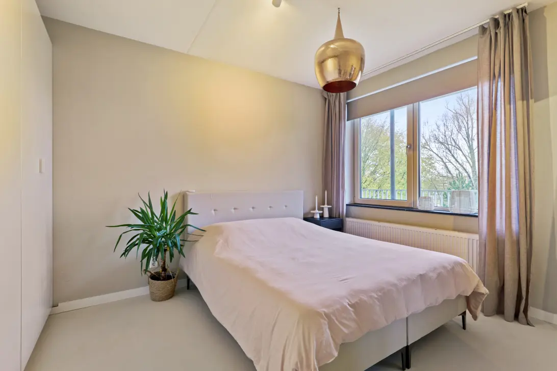 De grote slaapkamer is gelegen aan de entreezijde van het appartement en beschikt over veel kastruimte.