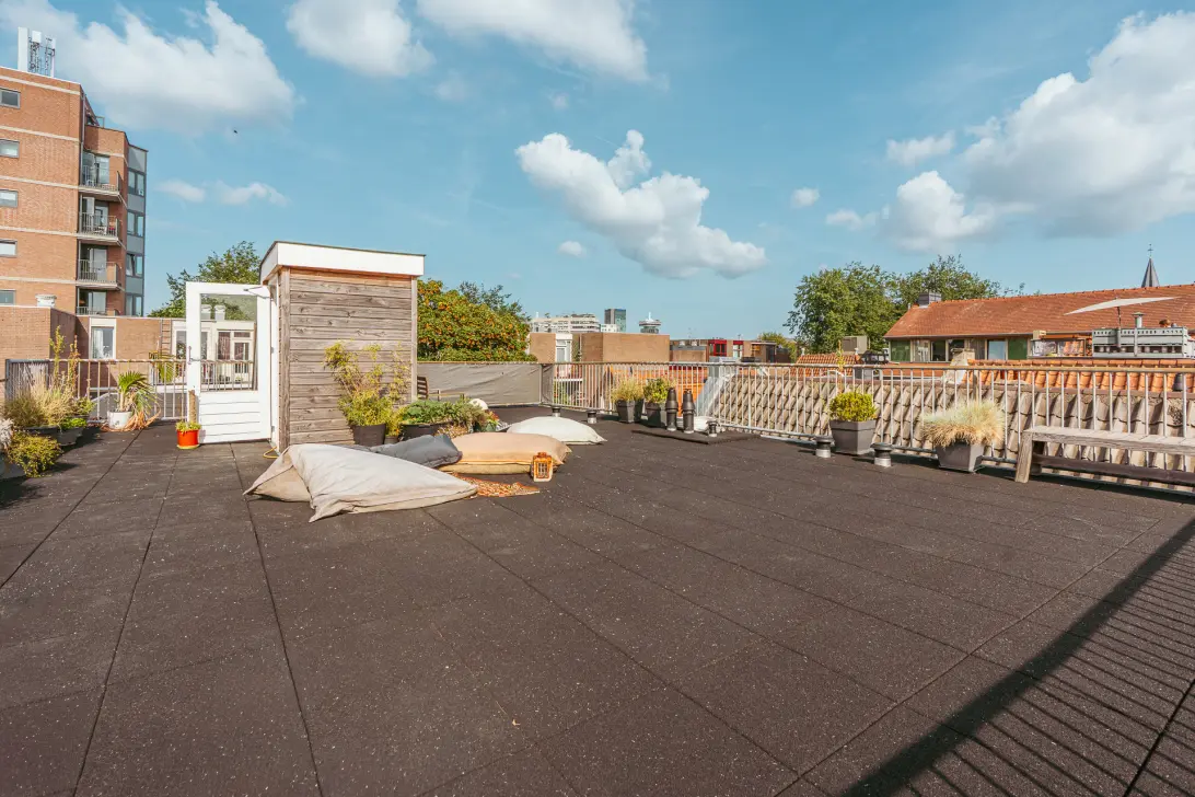 Via het trappenhuis is het prachtige gemeenschappelijk dakterras bereikbaar.