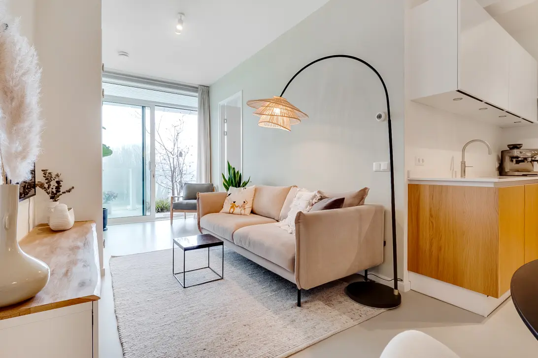 Het appartement is gelegen in een verzorgd en modern complex en is bereikbaar via de centrale entree met lift. Op de derde verdieping kom je in een kleinschalige hal die je deelt met één buurwoning. Via je eigen voordeur stap je direct de woonkamer binnen. De woonkamer is licht en efficiënt ingedeeld, met grote raampartijen die zorgen voor een prettige lichtinval en een ruimtelijk gevoel. De woning is hoogwaardig en met smaak afgewerkt, zichtbaar in de zorgvuldige materiaalkeuze en details.