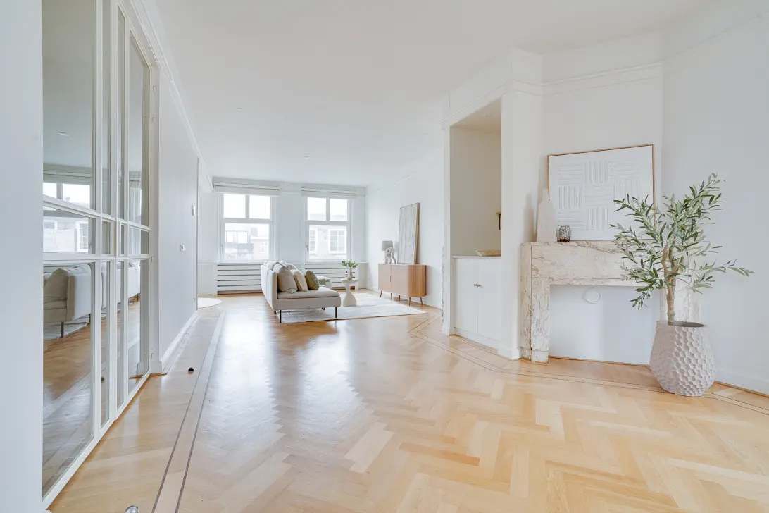 Stijlvol gerenoveerd dubbel bovenhuis van 174 m² in Amsterdam Oud-Zuid met vier slaapkamers, twee badkamers en een royaal zonnig dakterras van 55 m², gelegen op een ware toplocatie.