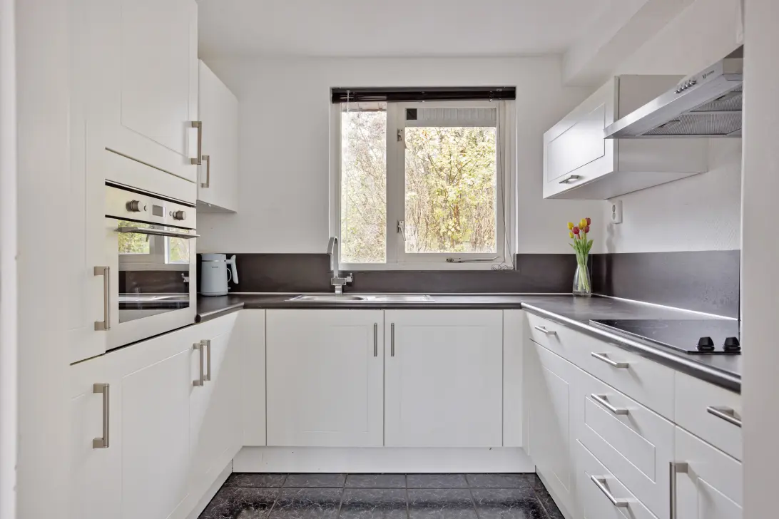 Via de hal met meterkast en toilet stap je de woonkamer binnen, waar de open indeling en de lichtinval direct een uitnodigende sfeer creëren. De woonkamer voelt als een fijne leefruimte waar je kunt ontspannen of mensen kunt ontvangen, met aan de voorzijde de keuken die door zijn complete uitrusting ideaal is voor wie graag kookt. Vanuit de woonkamer loop je zo de tuin in, waar je dankzij de houten schuur en de achterom veel gemak ervaart tijdens het dagelijkse gebruik.