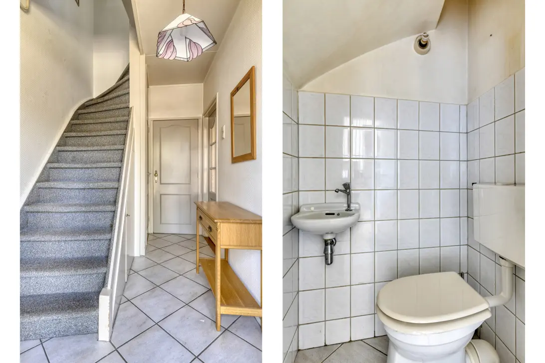 On the first floor, there are two spacious bedrooms and a bathroom with a shower, sink, and second toilet. Originally, this floor had three bedrooms, which can easily be restored. The second floor, with a dormer window and French windows, provides additional living space: perfect as a bedroom, office, or hobby room.