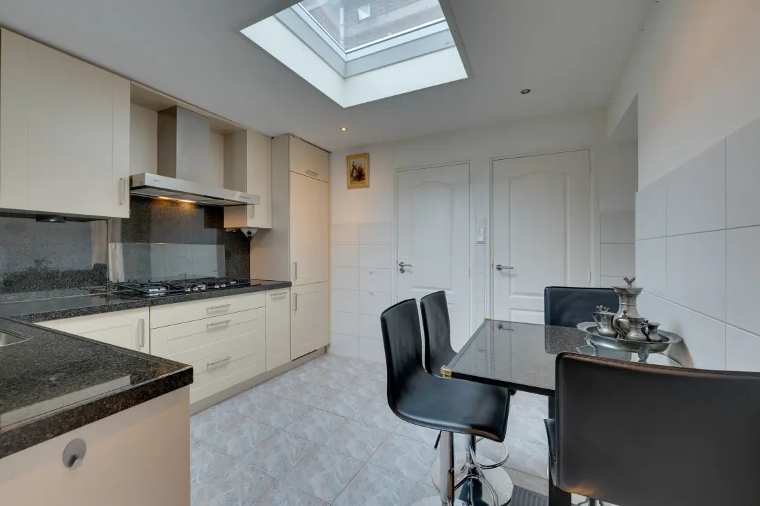 De woning is door de jaren heen goed onderhouden en ziet er keurig uit. Beneden een woonkamer met aangebouwde keuken en op de verdieping twee slaapkamers. Een absolute verrassing bevindt zich aan de achterzijde. Een royaal dakterras met gunstige zonligging op het zuidoosten. Hier geniet je in alle privacy van lange zomerdagen en een goed glas wijn. Een zeldzame luxe op deze locatie!