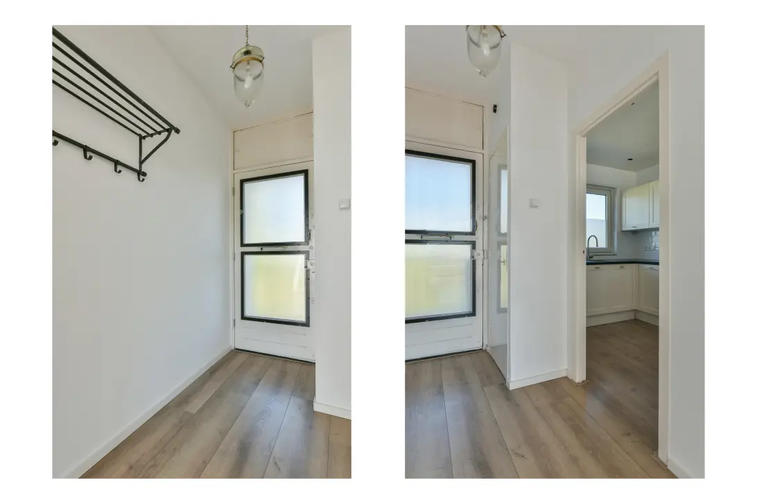 Indeling: centrale entree met videofoon/intercom. Vanuit de centrale hal is er toegang naar de berging (circa 5 m2) en het gemeenschappelijk trappenhuis naar de bovenverdiepingen.