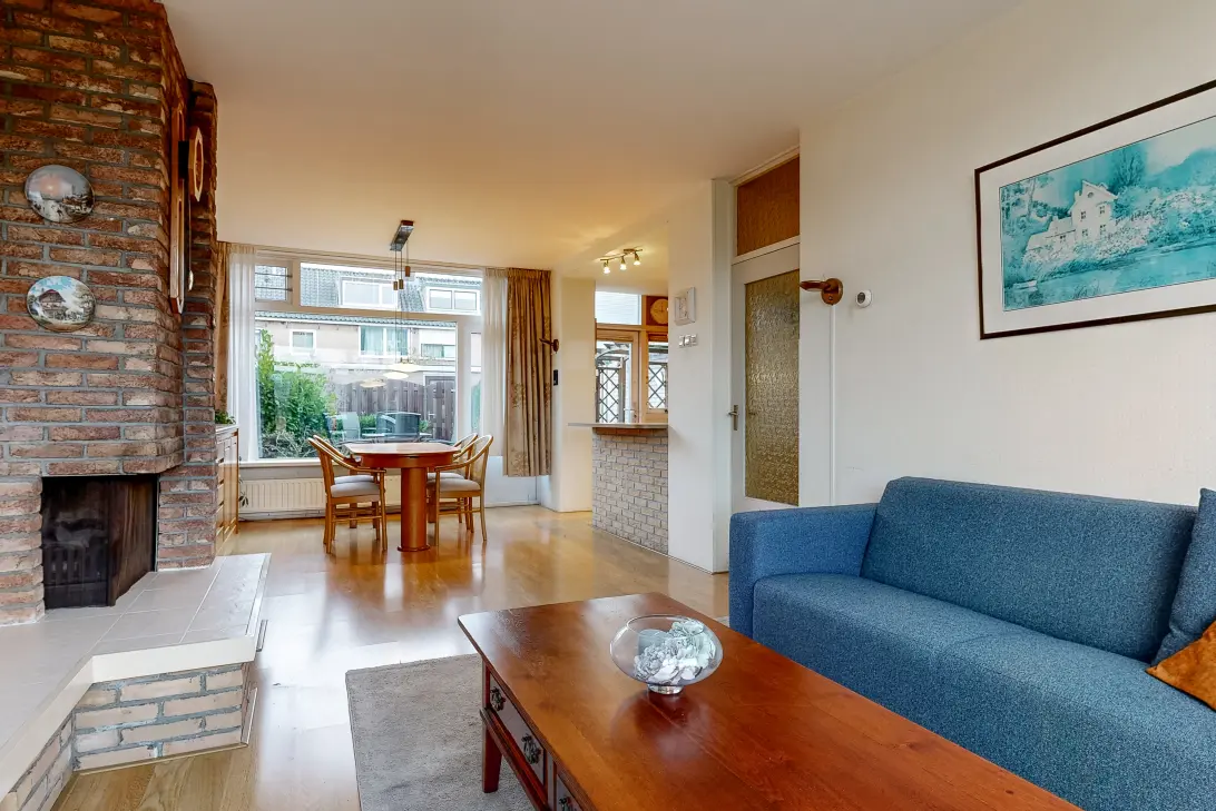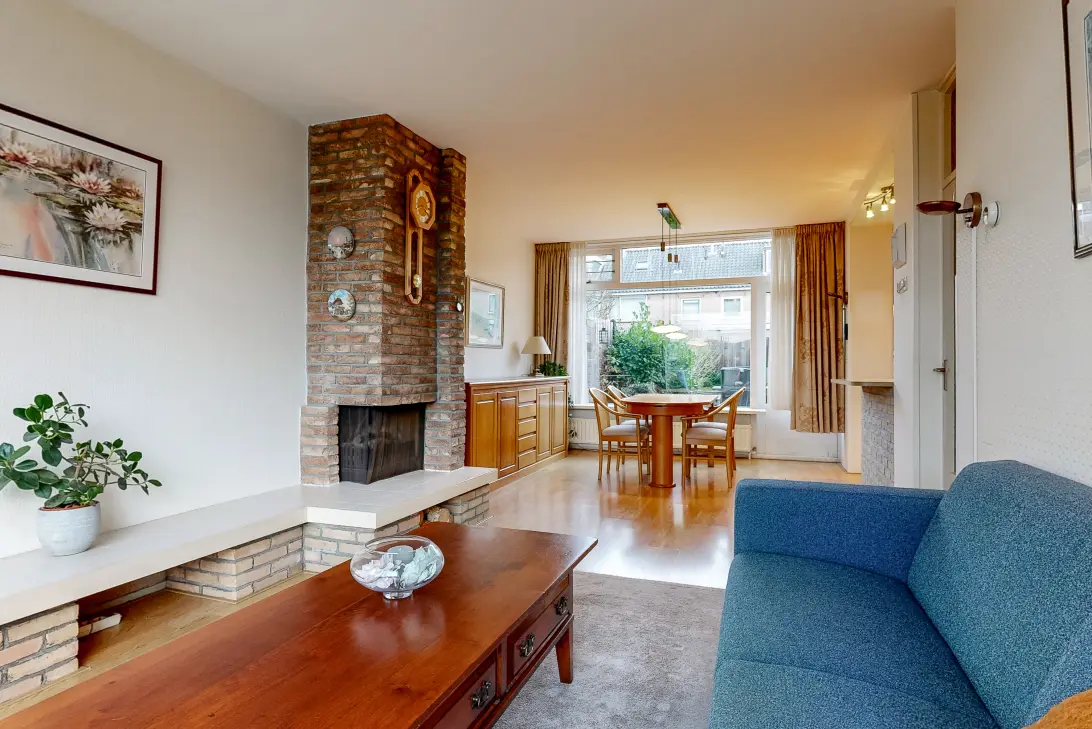 De doorzonwoonkamer is licht dankzij de grote ramen aan de voorzijde en de grote pui aan de achterzijde. Tevens beschikt de woonkamer over een knusse open haard.