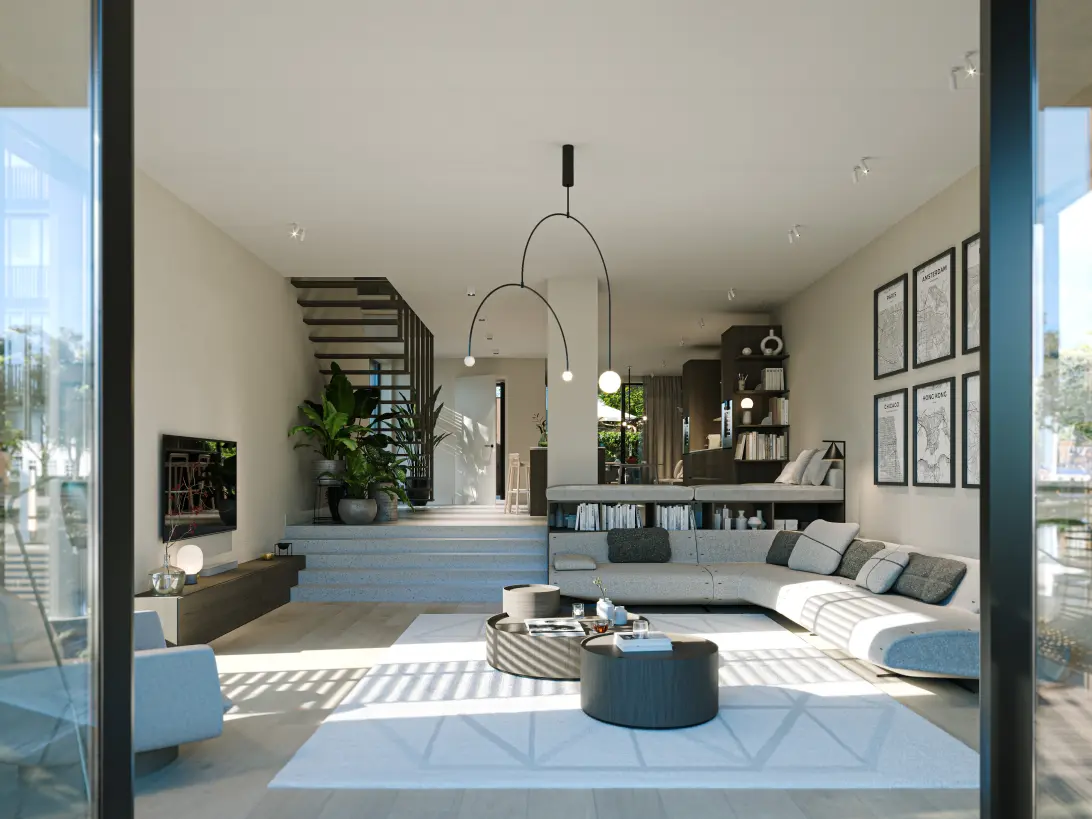 Binnen en buiten lopen hier moeiteloos in elkaar over. De living vormt het hart van de woning, subtiel verdiept voor een intieme sfeer en prachtig uitzicht op het water. Openslaande deuren verbinden de woonkamer met het terras en de privé aanlegsteiger van circa 12 meter (erfpacht). Aan de achterzijde ligt de tuin aan de werf, bereikbaar vanuit de keuken.