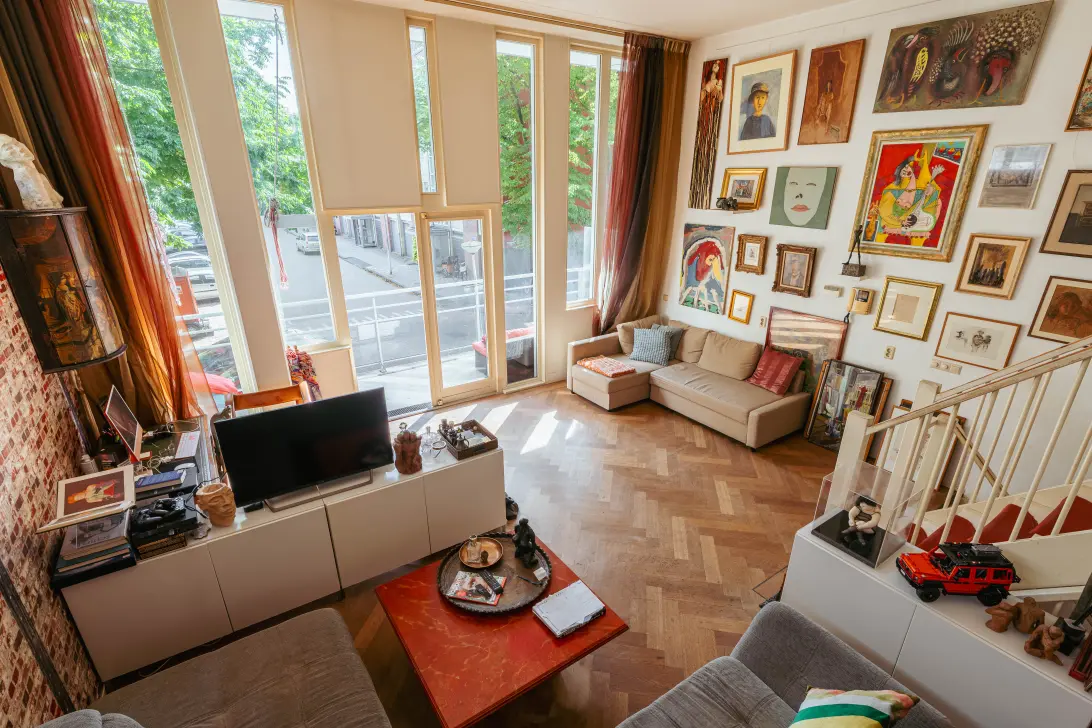 A playful, spacious, and bright apartment that feels like a New York loft and a complete family home in one. The high ceilings, large windows, and striking split-level design give this apartment a unique and contemporary character.