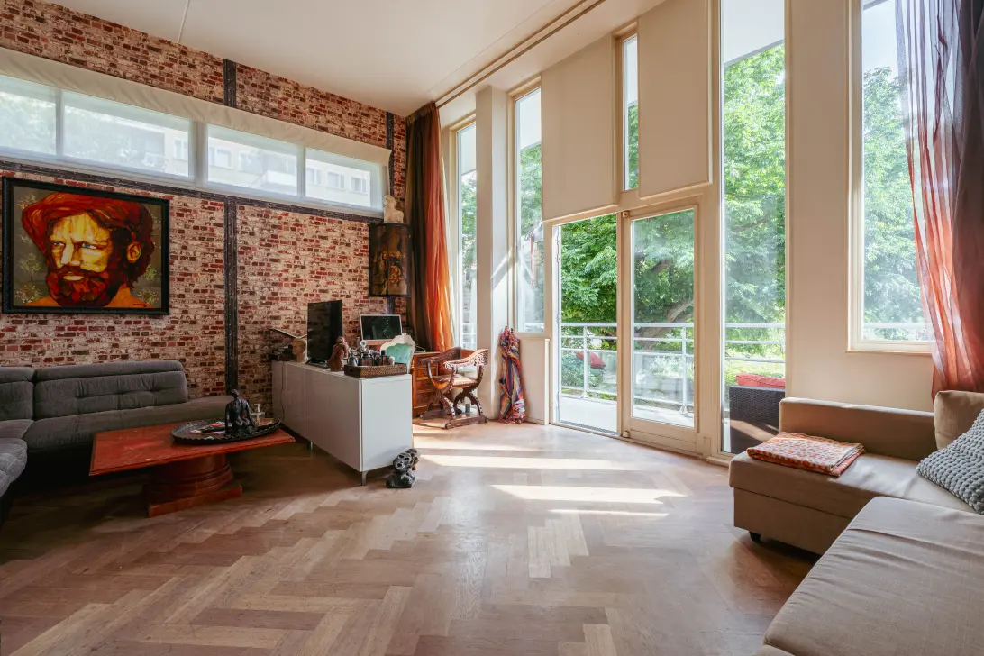 Een speels, ruim en licht appartement dat aanvoelt als een New Yorkse loft én een complete eengezinswoning in één. De hoge plafonds, grote raampartijen en het speelse split level ontwerp geven dit appartement een unieke en eigentijdse uitstraling.
