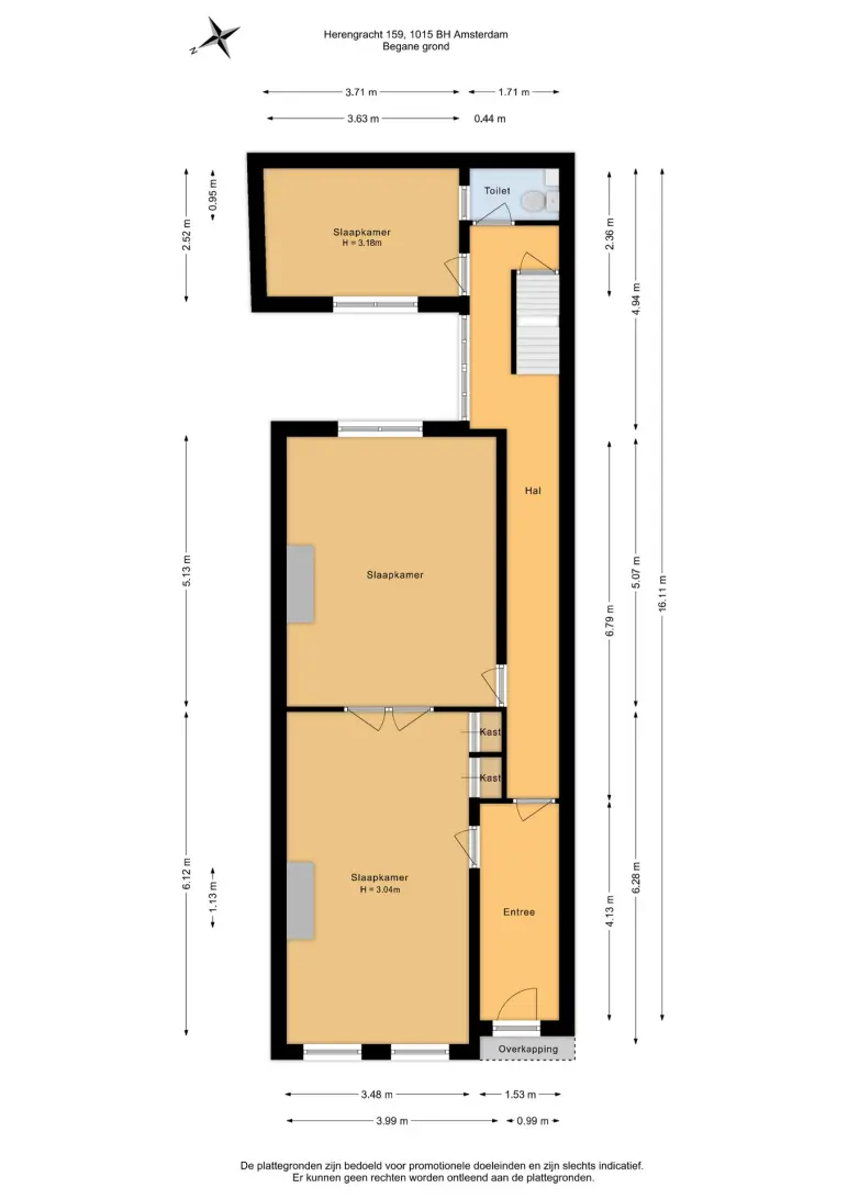 Geheel grachtenpand – Rijksmonument op EIGEN GROND.