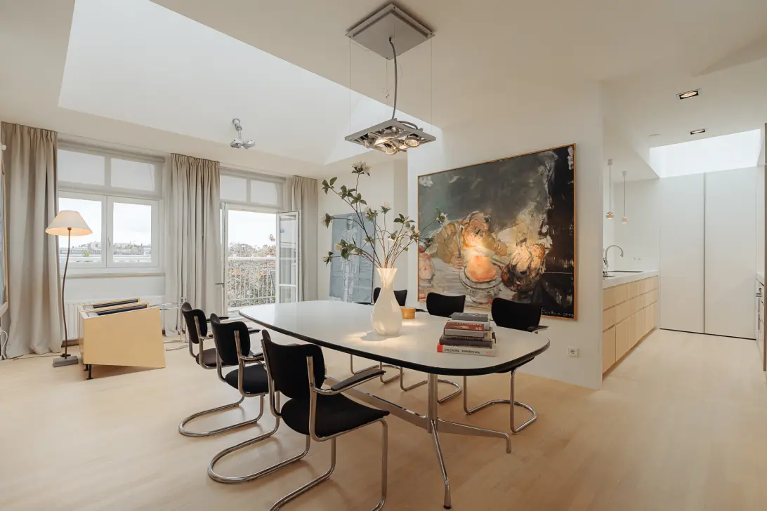 • Penthouse van 13 meter breed en 6 ramen met uitzicht op de Herengracht.
