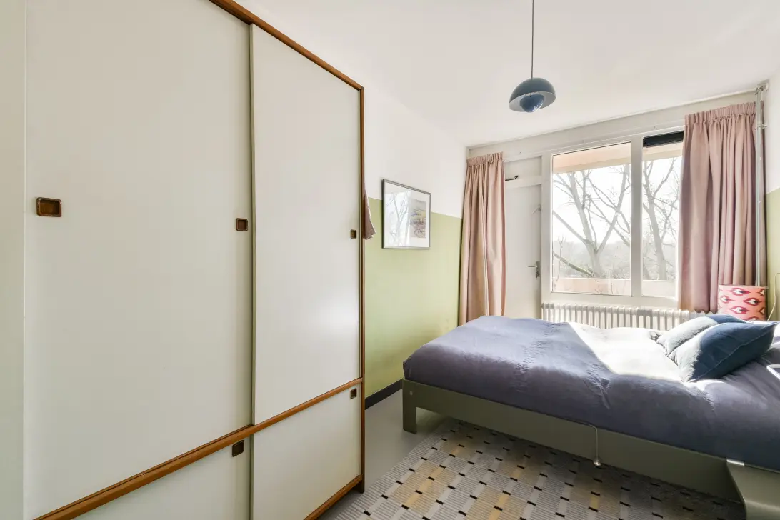 De woning beschikt over twee slaapkamers, beide met directe toegang tot het zonnige balkon op het zuiden. Hier geniet je vrijwel de hele dag van de zon. Eén van de kamers is momenteel in gebruik als werkkamer, maar kan uitstekend dienen als tweede slaapkamer of kinderkamer.