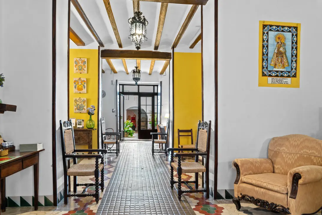Dit 19e-eeuwse herenhuis, dat barst van karakter en historie, is zorgvuldig gerestaureerd. Oorspronkelijke elementen zoals de hoge plafonds, houten balken en terracotta vloeren zijn behouden gebleven, wat het pand een rustieke en tijdloze uitstraling geeft. Het huis beschikt over vijf ruime slaapkamers, elk met een eigen badkamer, perfect voor het ontvangen van gasten in een luxe en comfortabele omgeving.