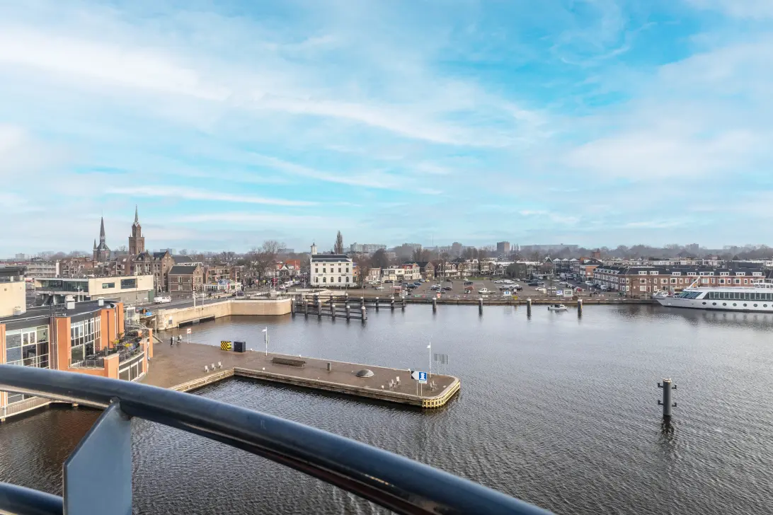 De woonkamer strekt zich uit over de volledige breedte van het appartement en biedt het eerder genoemde fenomenale uitzicht over de Burcht, Wilhelminasluis en de Zaan. Aansluitend bevindt zich een extra ruimte, ideaal als werk-, zit- of derde slaapkamer. Vanuit de woonkamer bereikt u het prettige balkon, waar het heerlijk vertoeven is en u ook kunt genieten van een fantastisch uitzicht.