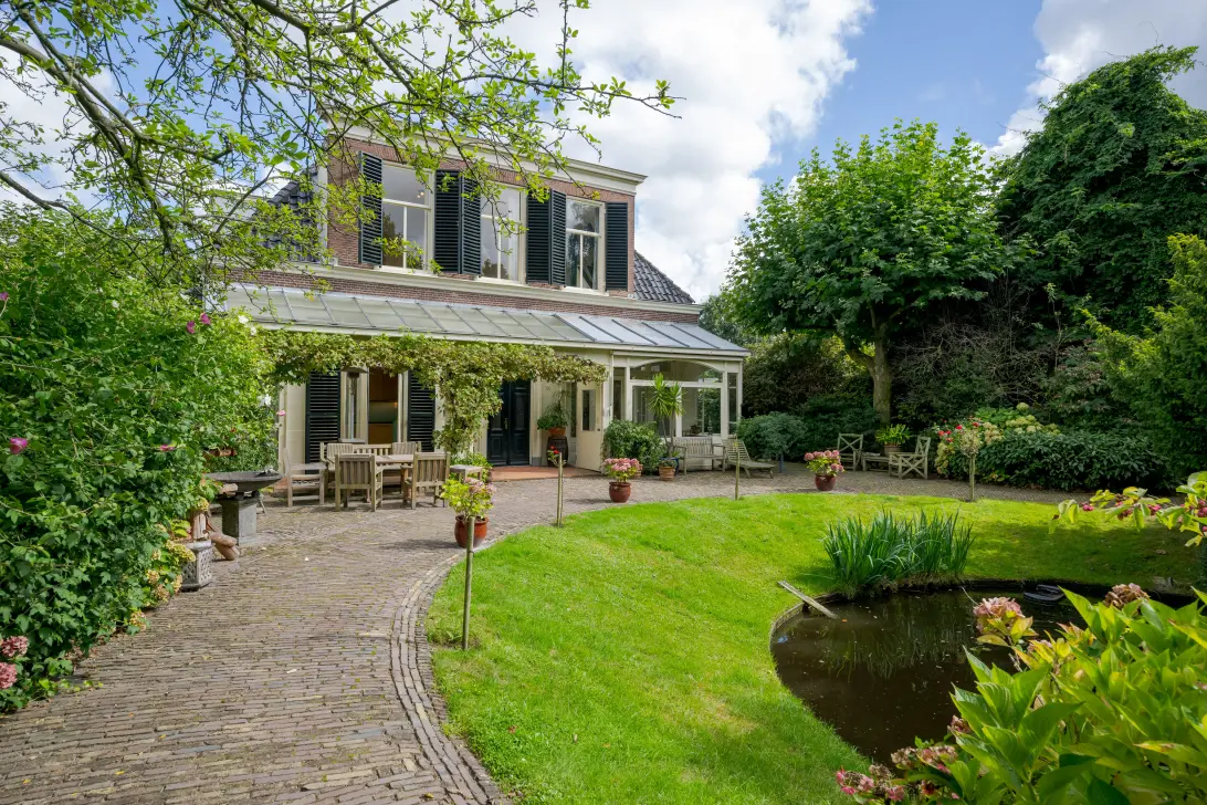 In de tuin met terras langs het water kunnen ontbijt, lunch, borrel en diner tegen een achtergrond van voorbijvarende bootjes genuttigd worden. Mocht er een bekende voorbij varen, dan kan er even aangelegd worden om in te stappen. Uiteraard zou je ook de eigen boot kunnen pakken. De woning beschikt immers over een eigen botenhuis met helling, waar je zou ook nog een insteekhaven zou kunnen maken en met een klein stukje varen ben je op De Kaag of naar het midden in het Groene Hart, het centrum van Leiden met haar vele romantische grachten en terrassen.