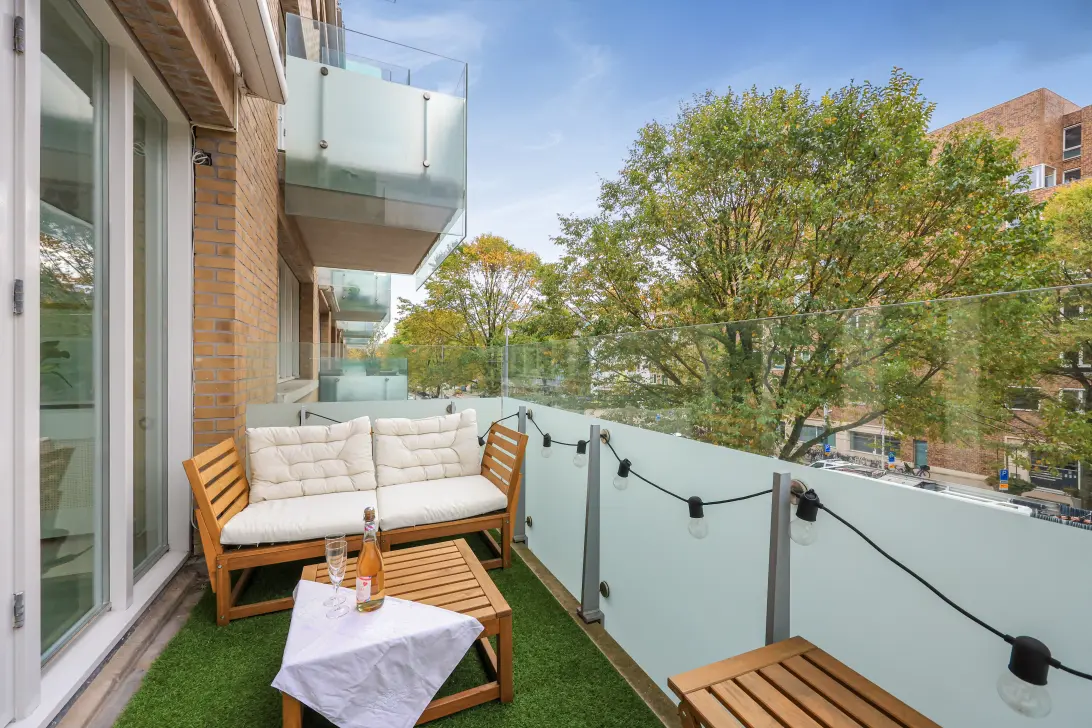 De luxe open keuken is uitgerust met hoogwaardige Siemens-apparatuur en biedt directe toegang tot het zonnige, westgerichte balkon via openslaande deuren. Dit is de perfecte plek om van uw ochtendkoffie te genieten of na een drukke werkdag tot rust te komen.
