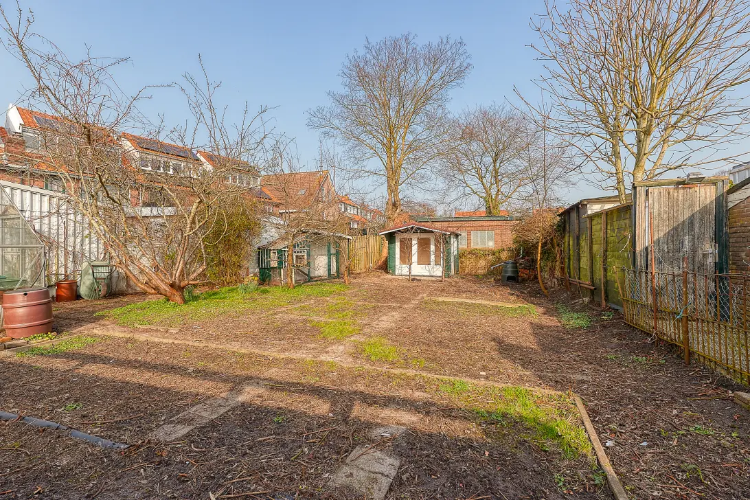 De woning beschikt over een zeer ruime achtertuin, inclusief een extra perceel van 207 m² met houten berging. Een paradijs voor tuinliefhebbers of voor wie op zoek is naar extra ruimte en mogelijkheden – denk aan moestuinieren, spelen of ontspannen in het groen.