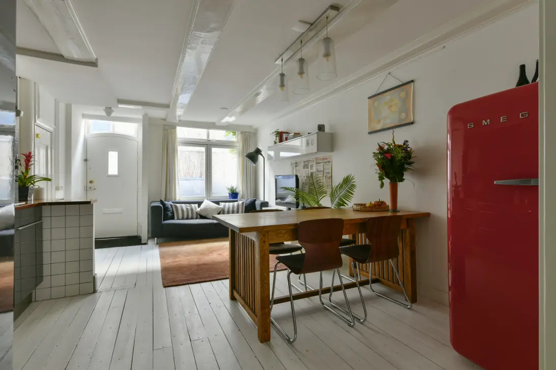 Very centrally located in the city center in a quiet area. For many residents, it feels like a village within the city: green, atmospheric, and small-scale with all urban amenities within easy reach. Nearby is Kadijksplein with its various cozy terraces, pubs, and restaurants. Artis, Nemo, the Public Library, Waterlooplein, and the Scheepvaartmuseum are just a few minutes away by bike. For those who enjoy boating, the water of the Nieuwe Vaart is just behind the Hoogte Kadijk. You can do your daily shopping nearby at Bakkers van Oost, Albert Heijn, Franks Smoke House, and Spirit Amsterdam.