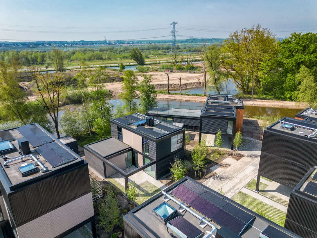 Staal, zwart glas en daglicht, deze elementen vormen de inspiratie voor de spectaculaire villa’s ontworpen door Courage architecten. De uitzonderlijke architectuur past uitstekend bij de prachtige locatie in Muiden, gelegen langs de oude transportsloten van Het Kruitbos tussen een oase van groen met een industriële historie. Elke villa heeft een unieke ligging en is stijlvol vormgegeven. Dankzij de verdiepingshoge ramen hebben de villa’s een zee aan licht, schitterend uitzicht en een optimale verbinding met de natuurlijke omgeving.