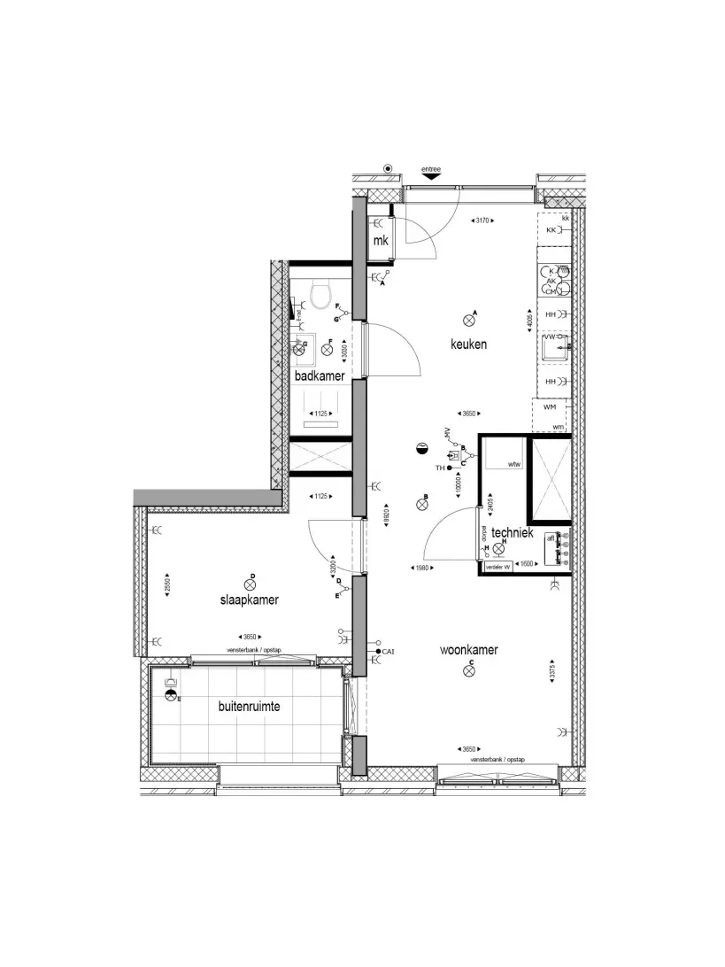 * Buitenruimte ca. 5m2, gelegen op het zuiden