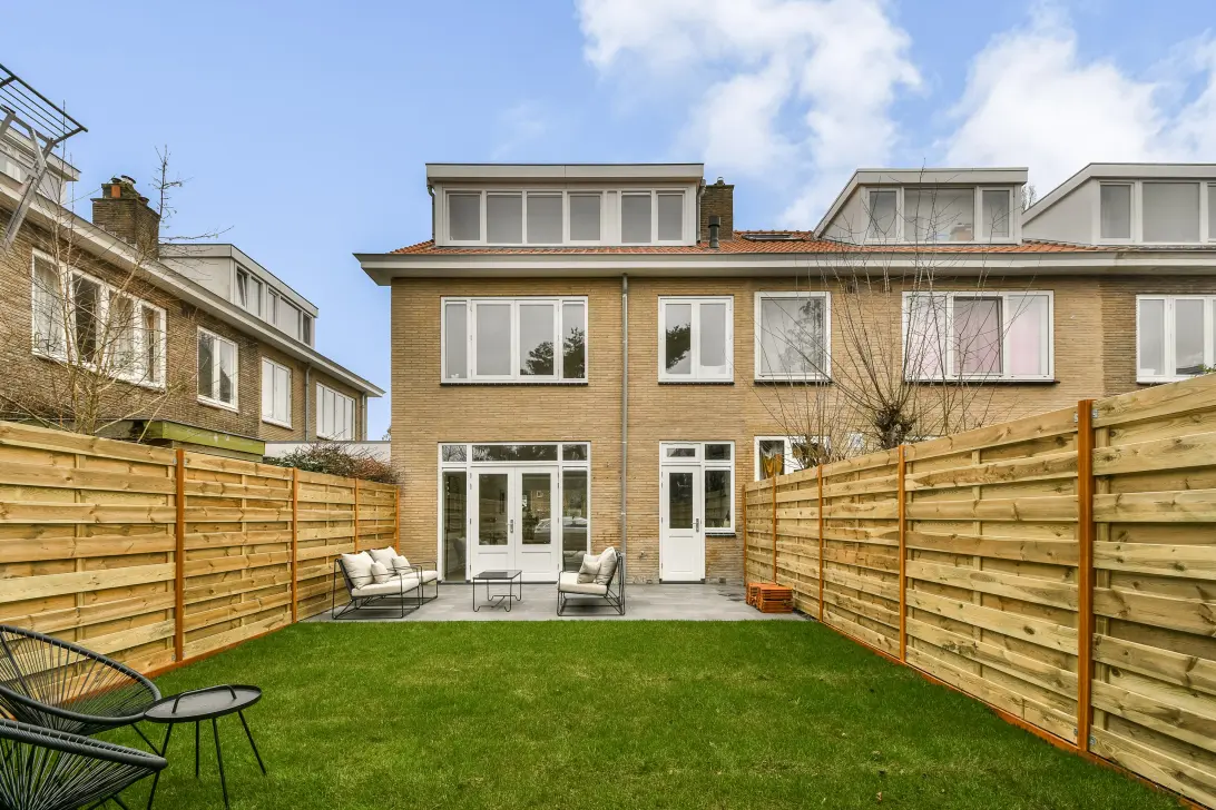 De keuken is ruim opgezet en voorzien van diverse Bosch inbouwapparatuur, waaronder een koel-vriescombinatie, combi-oven, inductiekookplaat, vaatwasser en afzuigkap. Vanuit zowel de eetkamer via openslaande deuren als vanuit de keuken heeft u toegang tot de fraai vernieuwde achtertuin van circa 67 m². De tuin beschikt over een achterom en biedt volop ruimte om te genieten van het buitenleven. Aan de voorzijde bevindt zich tevens een voortuin van circa 30 m².