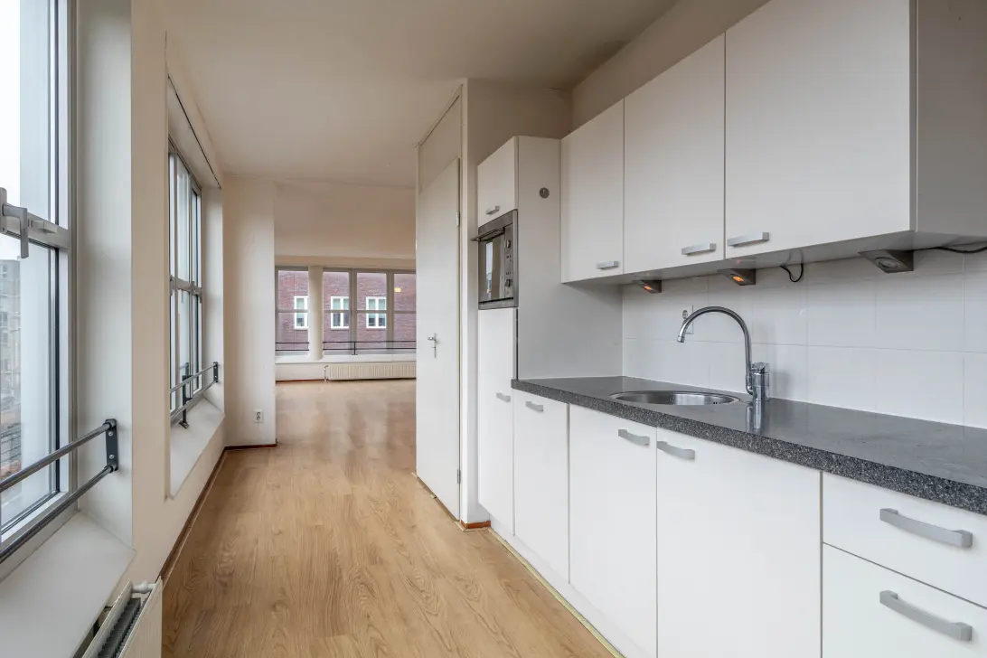 Bij binnenkomst komt u in de hal, die toegang biedt tot diverse vertrekken. Het appartement beschikt over twee goed bemeten slaapkamers, een separate toiletruimte met fonteintje en een badkamer voorzien van een douche, hangtoilet en wastafel. De ruime woonkamer heeft grote raampartijen, die zorgen voor veel lichtinval en een iconisch uitzicht op de IJburglaan. De open keuken is uitgerust met een 4-pits inductiekookplaat, afzuigkap, (combi)oven en een koelkast met vriesvak. Tot slot is er een inpandige berging met aansluiting voor de wasmachine.