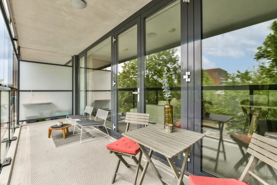 - Groot balkon op het zuidwesten met glazen schuifpanelen – heerlijk in de middag- en avondzon;