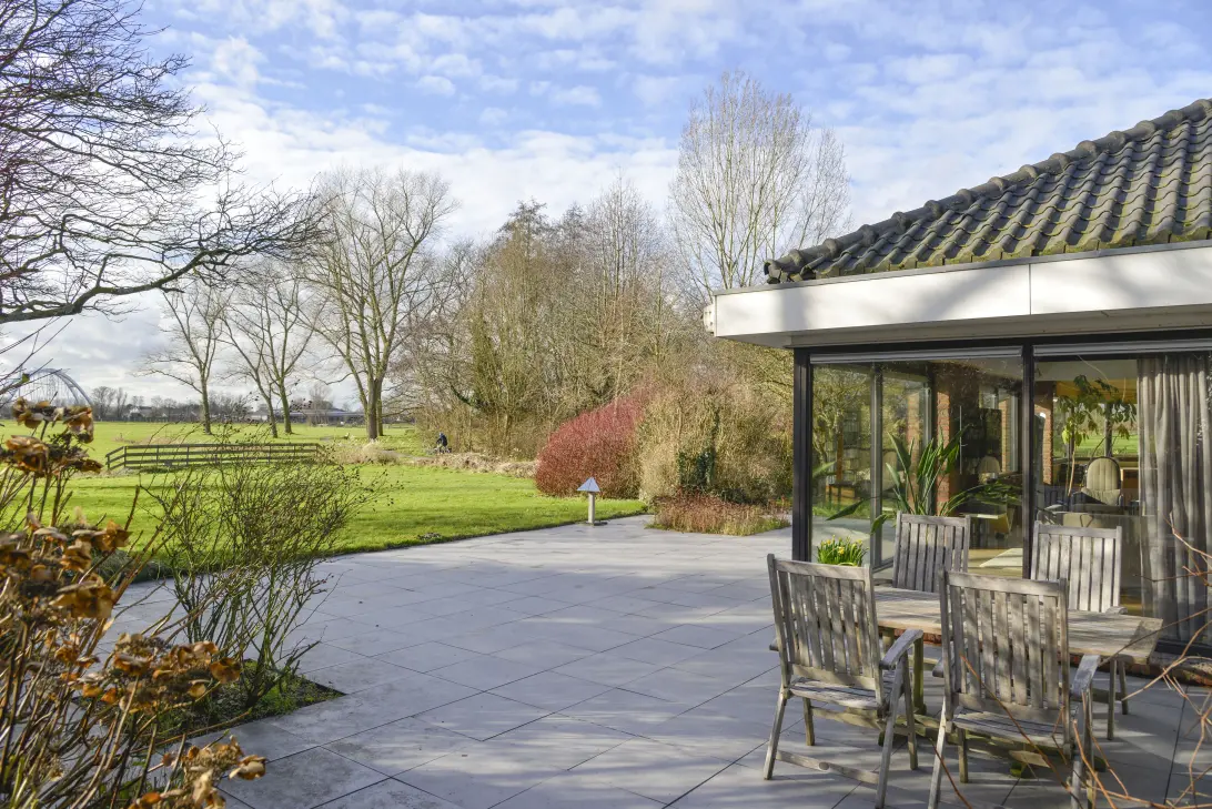 * De tuin is omringd door slootjes en biedt directe toegang tot natuur en wandelpaden.